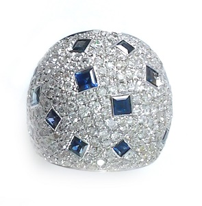 טבעת כיפה ספירים כחולים ויהלומים דגם דונה. טבעת מודל כיפה Dome ring, טבעת קוקטייל בעלת נוכחות על היד.
